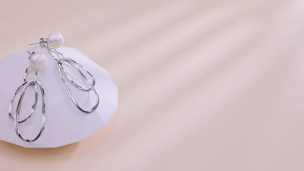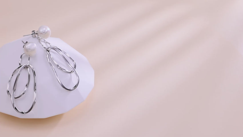 Stunning Sterling Silver, 3 Hoop & Post Dangling Pearl Earring