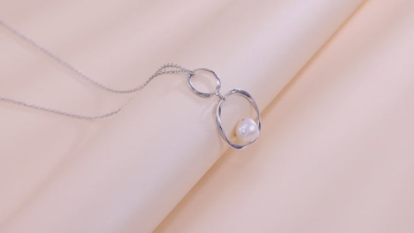 Stunning Sterling Silver & Pearl Hoop Pendant.